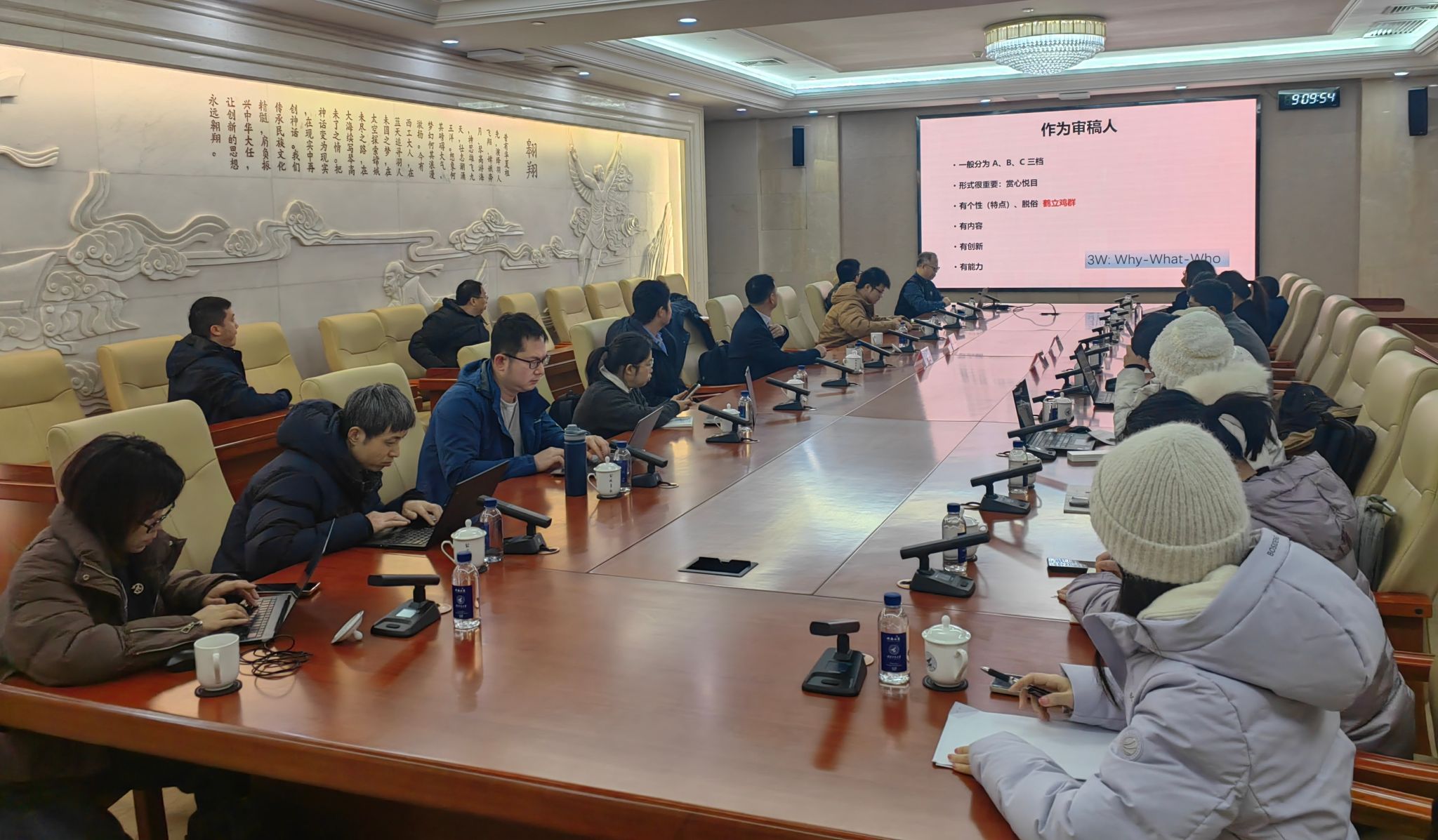 教师做国家基金申报辅导讲座。推筒子