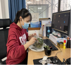 一花一世界,一草一天堂,视觉与颜色的完美融合,创意与制作间收获欢乐。网安推筒子 工会邀请了专业老师为大家线上讲解了操作步骤,在老师的远程帮助下,按步骤将绿植、多肉、砂石等物品一一放入到容器内,不断调整,最后定格成作品。