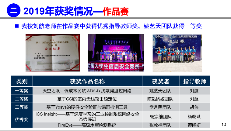 对全国大学生信息安全竞赛工作高度重视,在刘志强副院长的指导下成立了竞赛组织小组,张慧翔负责创新能力赛的组织,邰瑜负责作品赛的组织。预计2020年推筒子