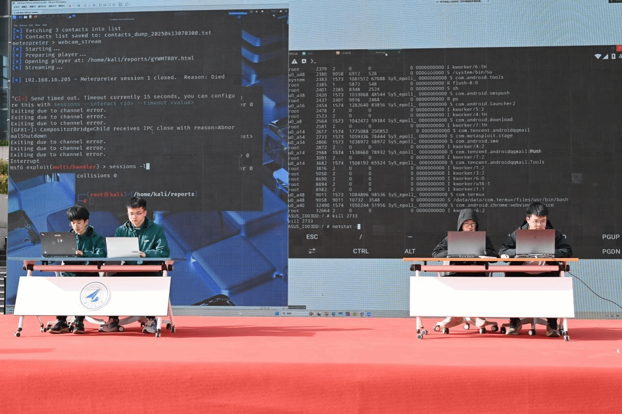 在开幕式中,同学们化身公司要员、远程黑客等角色,为现场观众呈现了AI换脸、钓鱼邮件、白帽技术,还有多彩魔术、艺术演出等精彩纷呈的节目。激烈的网络安全攻防战直观展现了网络空间面临的安全威胁种类多样、防不胜防,更体现了网络安全防御技术见招拆招、与时俱进的进步特点,生动的演出令在场的每一位同学更深刻地认识到网络安全以及增强安全防范意识的重要性。在表演间隙,现场组织了多轮有奖竞答,同学们积极参与知识抢答游戏,活动现场气氛紧张刺激,大家在趣味学习、沉浸体验中收获颇丰。