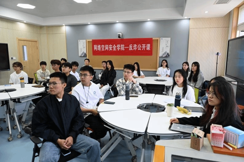 反诈宣传队结合AI技术剖析网络和电信诈骗新态势,采取线上线下相结合方式,在长安校区给学生讲授网络信息内容与认知安全公开课。