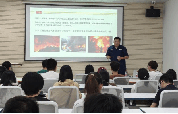 保卫处消防科许磊老师进行消防安全知识讲座。许老师结合“预防为主、防消结合”的消防安全理念,通过剖析校园内发生的真实火灾案例,讲解了校园火灾隐患排查、夏季防火注意事项以及火场逃生自救技巧等内容。他强调,消防安全无小事,每位师生都应掌握基本的消防知识,做到防患于未然。
