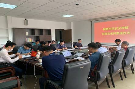 王高祖书记在会上介绍了史延东老师在教书育人、立德树人、科学研究、社会服务等方面做出的突出贡献,赞扬史延东老师发挥了网安推筒子