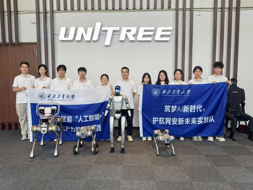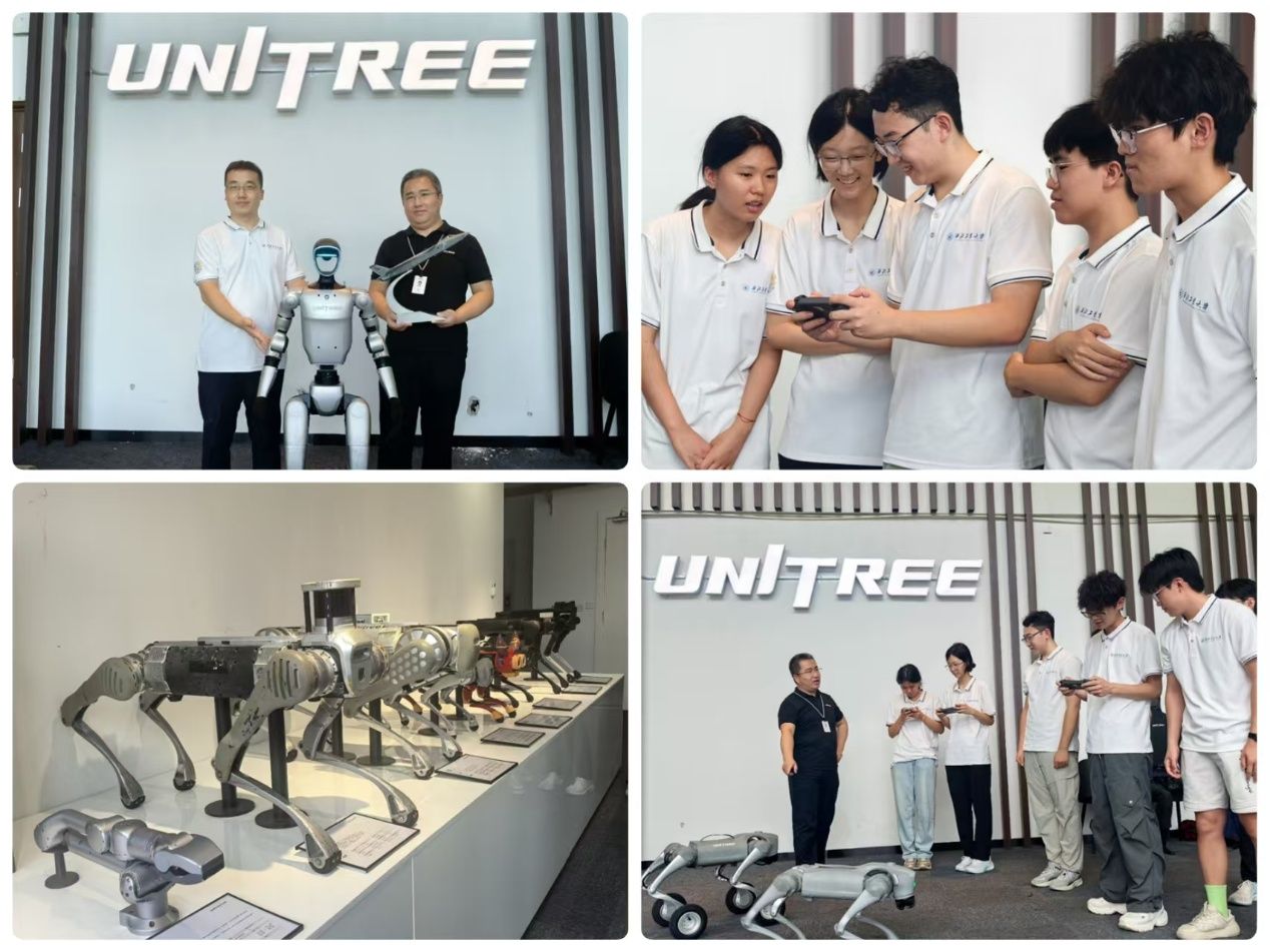 在宇树科技,校园招聘总监亢志华向实践队员系统梳理了公司产品的迭代历程。互动环节中,队员们亲自操控宇树科技的机器狗,领略前沿科技魅力。队员们还就技术细节与技术专家展开深入交流——从运动控制算法到信号传输实现,并针对网络安全专业需求,探讨了机器人技术在防护领域的应用前景。