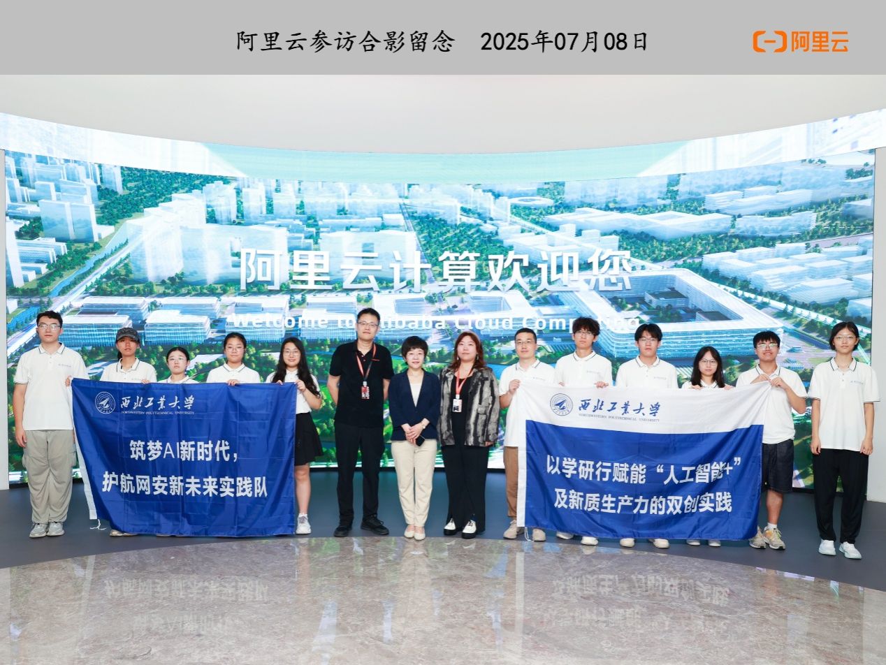 在阿里巴巴云谷园区,讲解员带领实践队参观了阿里云展厅,了解了阿里云以“全面拥抱AI”为特色的一系列服务产品和以“云计算推动科技创新”为指引的关键技术突破。座谈交流会上,阿里云高校合作团队负责人孔子强为大家介绍了AI大模型前沿技术及实践应用,介绍了阿里云的高校云支持计划。杜瑶表达了此行的初衷和期待,详细介绍了网安推筒子