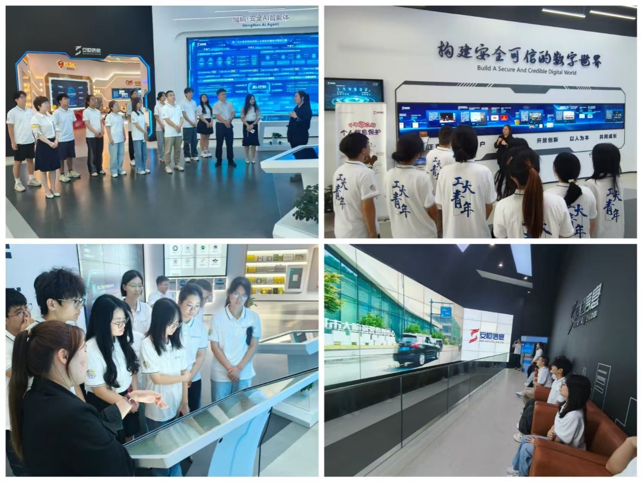 在海康威视,实践队员系统考察了企业在视频监控、智能感知、人工智能、大数据模型等领域的技术创新成果,深入了解了智能物联技术在智慧城市、工业互联网、网络安全等领域的创新应用,并就技术研发、产业转化、行业发展等议题与企业技术人员进行了深入交流。