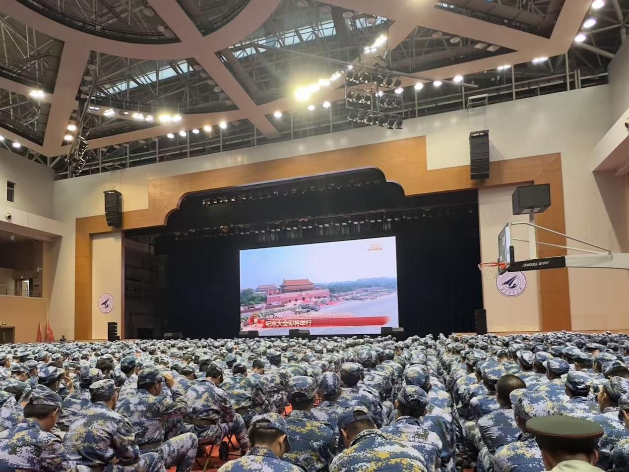 2025级本科生随军训师在翱翔体育馆集中观看