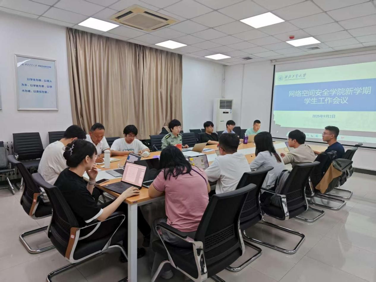 会议最后,杜瑶从党团工作、“三大赛”、实践“三个一”、学风建设、一站式社区建设及安全稳定等方面进行了总结和部署,并对组织学生观看学习纪念中国人民抗日战争暨世界反法西斯战争胜利80周年大会进行了部署。她强调,全体学工干部要进一步增强使命感和育人意识,以“三高”的工作标准和“三个永远”的工作作风扎实推进“总师型”网安人才培养质量不断提升,为推筒子