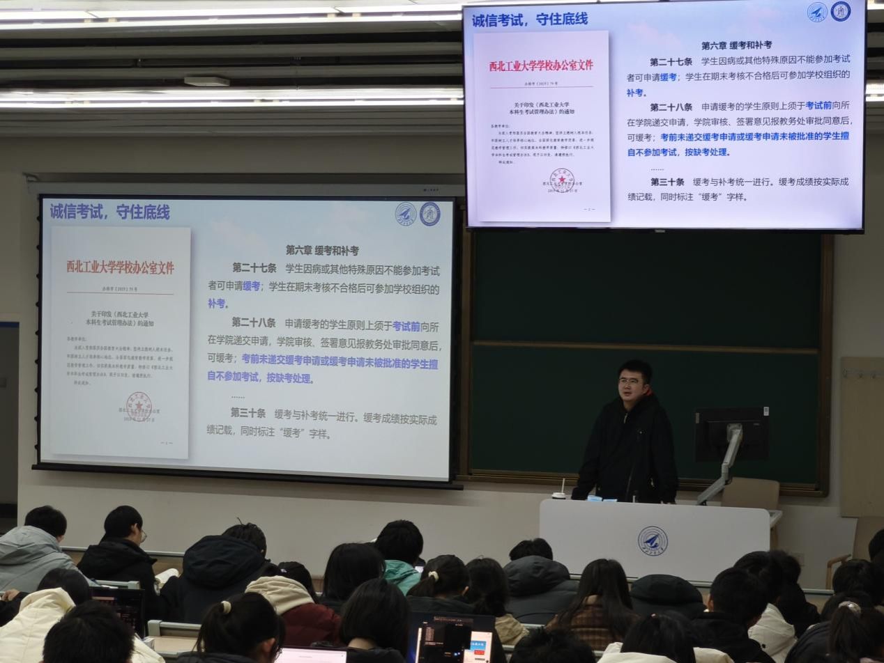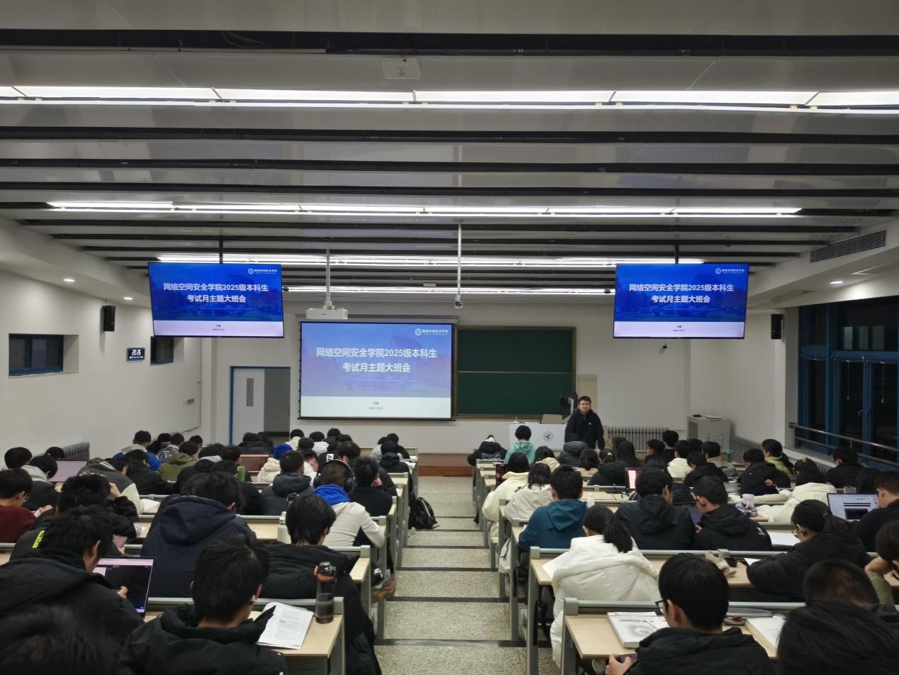 12月21日晚,推筒子 2025级本科生考试月主题大班会于教西B2-201教室顺利召开。本次大班会由年级辅导员付强主持,旨在助力2025级本科生明确期末复习方向、强化考试纪律意识、提升安全防范意识,以良好的状态迎接期末考试。