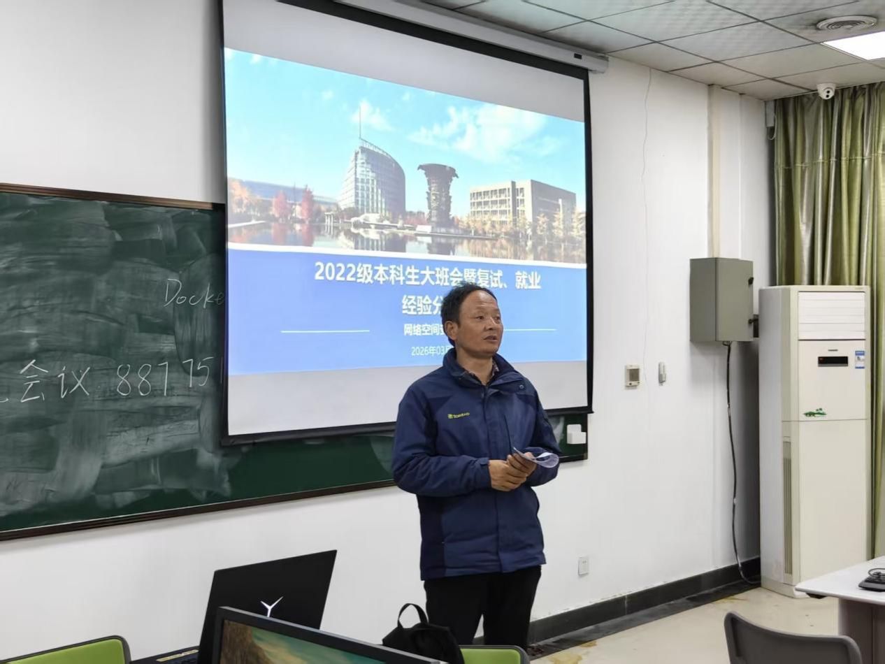 在104教室召开2026届本科毕业生就业、复试经验分享会暨2022级本科年级大班会。本次活动由辅导员王昌昌主持,邀请了多位优秀学生代表分享就业与复试经验,全体2022级本科生参加。活动旨在通过朋辈引领与精准指导,助力毕业生走好升学就业的“最后一公里”。