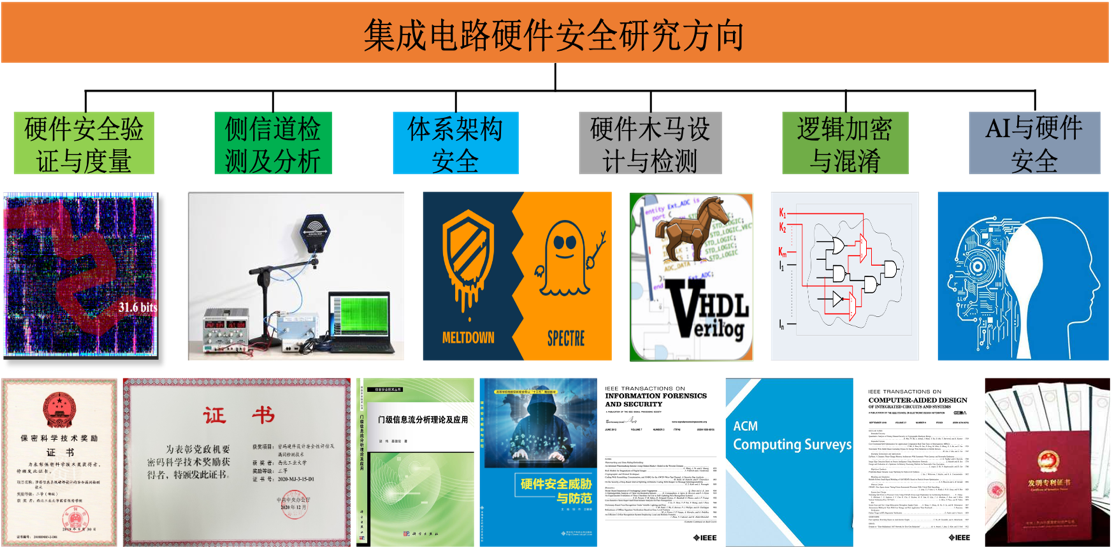 在集成电路芯片安全领域与国际顶尖的科研机构密切合作,开展了芯片设计安全模型、安全量化评估指标体系、安全形式化验证与量化分析以及安全漏洞自动化挖掘等领域关键技术的攻关,取得了许多国际前沿的科研成果,开发出了具有自主知识产权的芯片设计安全验证与漏洞检测工具,填补了该领域的国内空白,并获得2项部级科学技术奖。