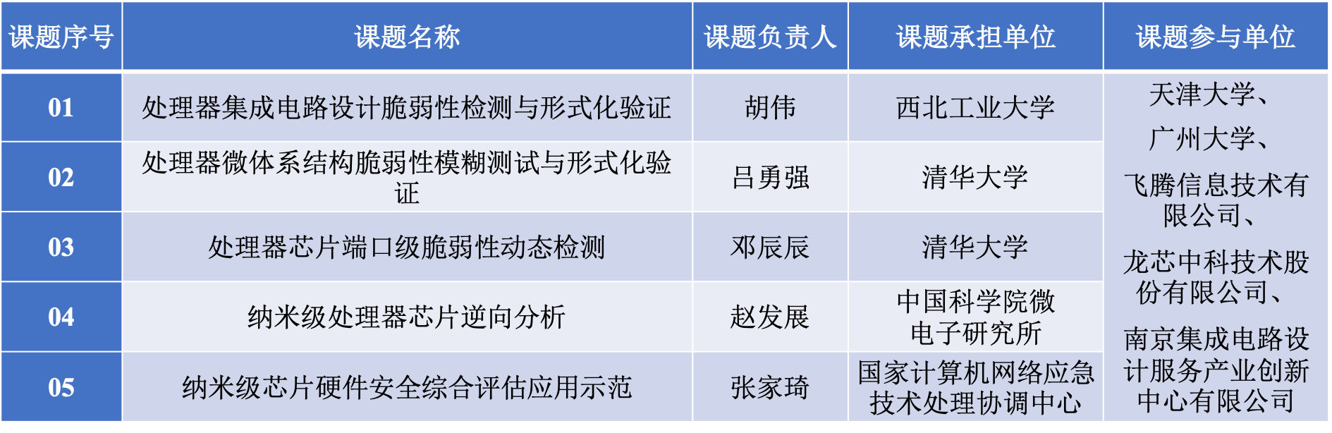 微电子研究所、天津大学和广州大学等本领域优势团队以及飞腾、龙芯、南创等国产处理器和EDA工具方面的领军企业联合承担。