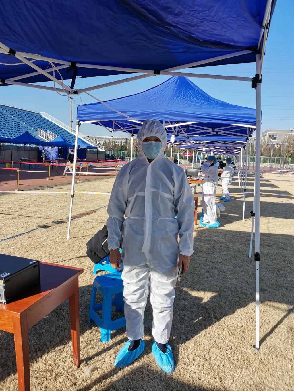 杨黎斌老师主动报名参加了友谊校区核酸检测志愿者服务,主要负责师生身份核对。“核酸检测是目前疫情防控最关键、最有效的手段,需要的人员比较多,推筒子