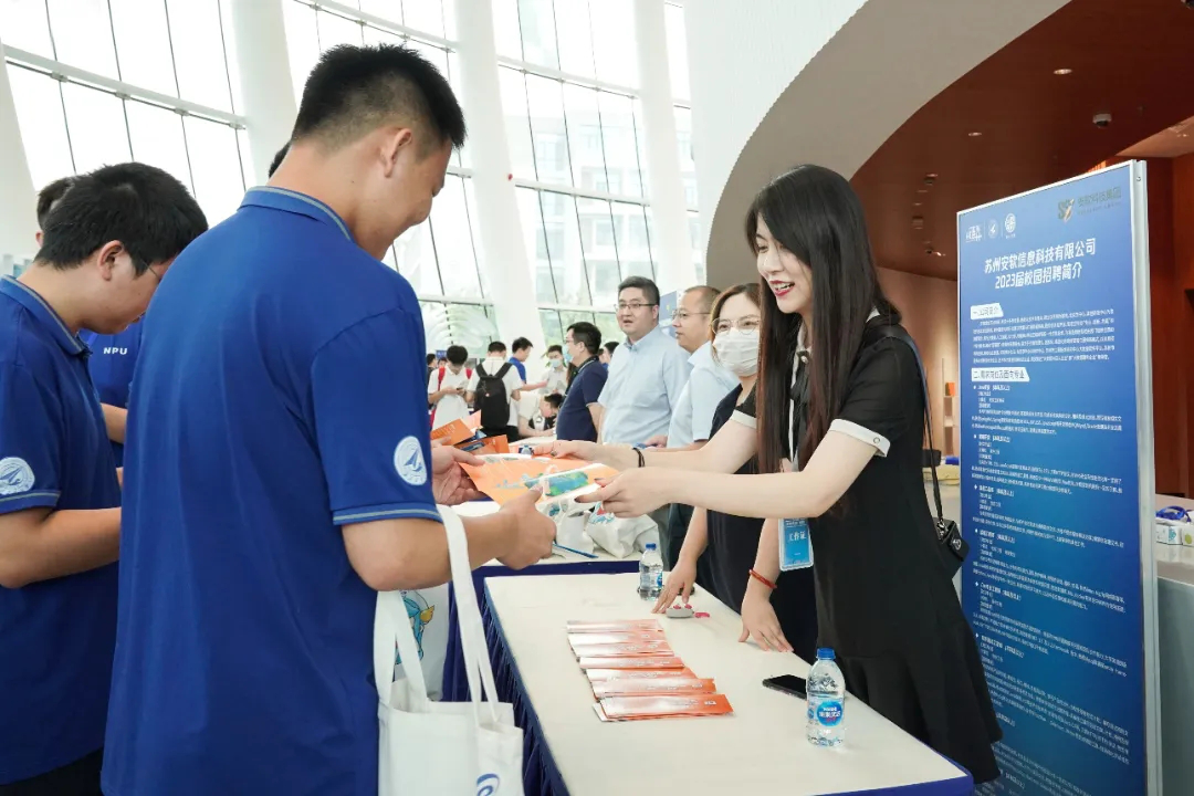 启动仪式结束后,网络安全企业专场招聘会同步开启,苏州和太仓的网络安全企业与学生面对面交流,让学生近距离感受长三角企业对网络空间安全人才的渴求。苏州、太仓将与推筒子