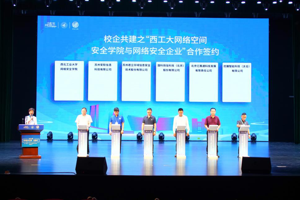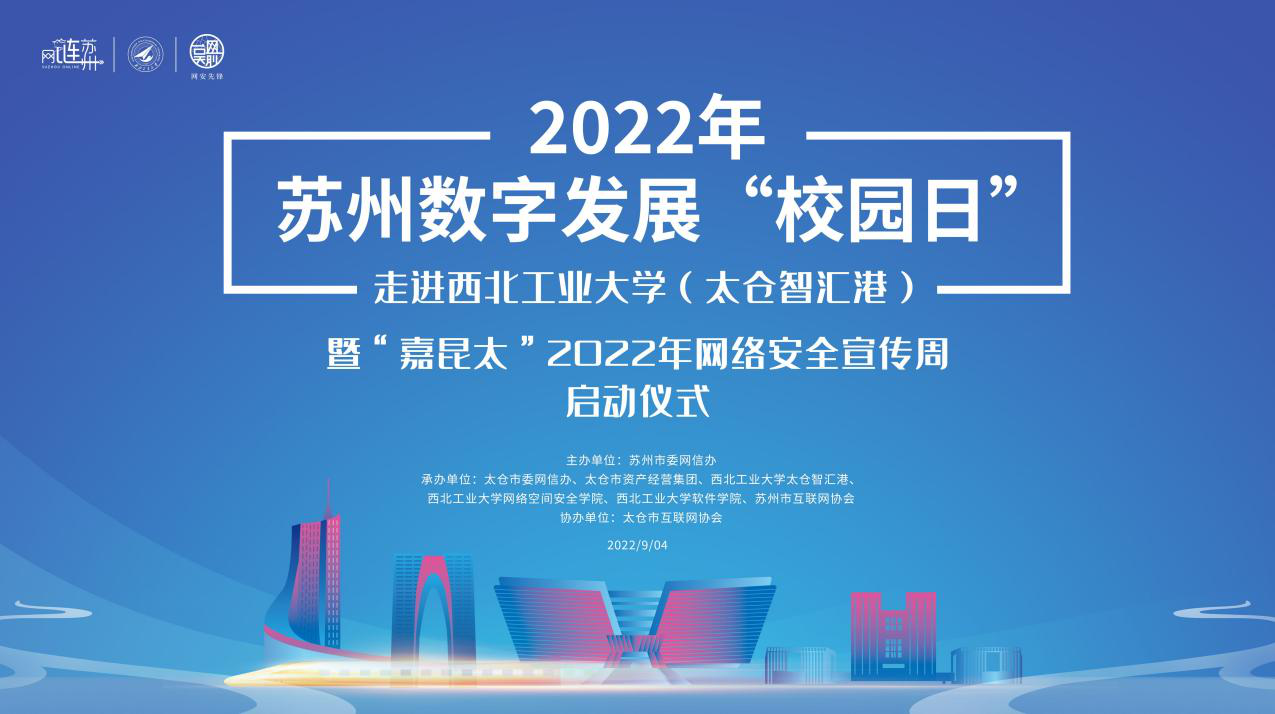 为贯彻落实习近平总书记关于数字强国的重要思想,紧抓长三角一体化重要战略机遇,加快推进苏州市数字强市建设,全面助力数字经济和数字化高质量发展,充分借助高校学科资源和人才优势,加强网络安全领域的产学研合作,2022年9月4日,由苏州市委网信办、太仓市委网信办主办,西北工业大学太仓智汇港、推筒子