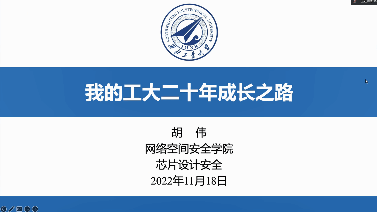 青年教师代表胡伟以《我的工大二十年之路》为题分享了个人在西工大二十年以来的求学、教学和科研工作经历,胡伟今年入选了国家级青年人才,他以自身的发展经历鼓励广大青年学者要脚踏实地,勇于创新,结合国家战略需求进行科研攻关,切实解决关键技术难题。