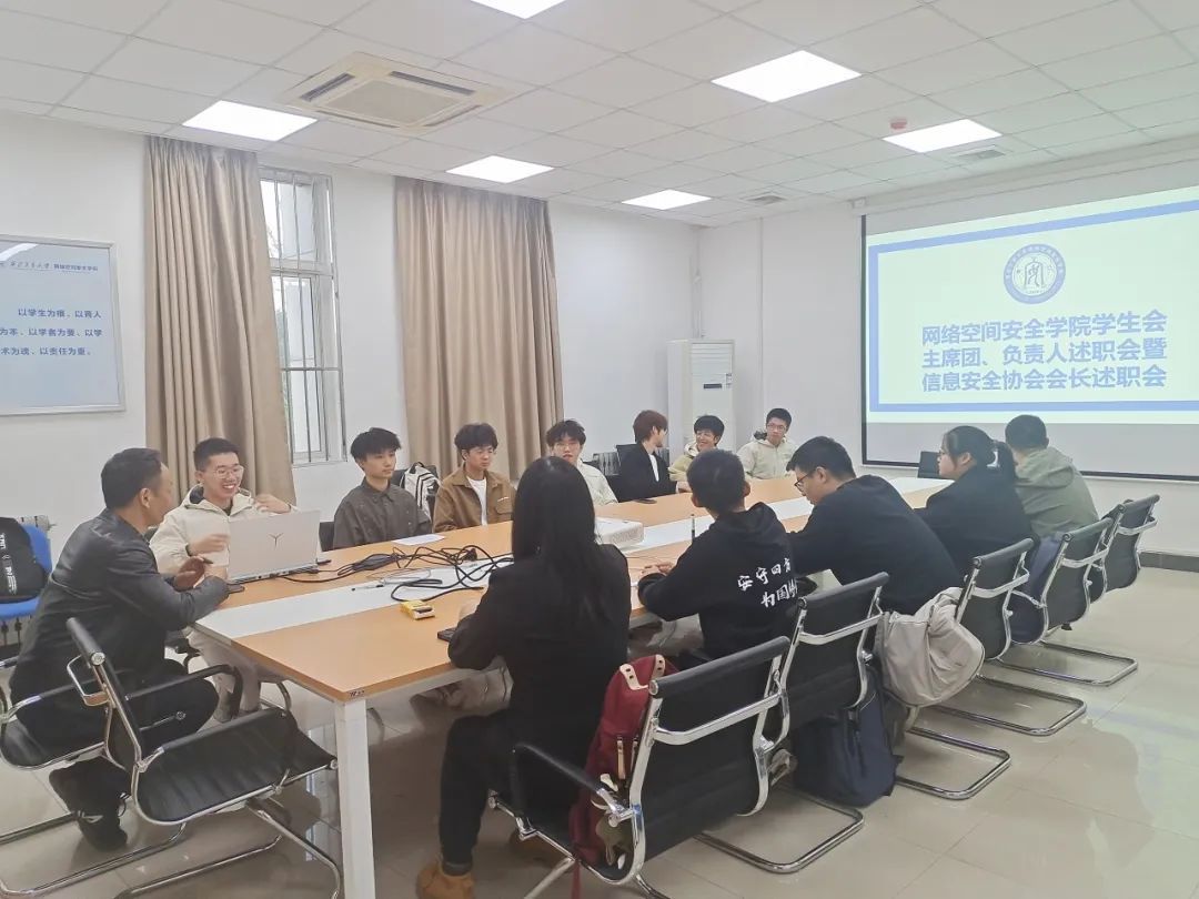 团委书记王昌昌主持,学生会主席团成员与各部门负责人以及信息安全协会会长与会。