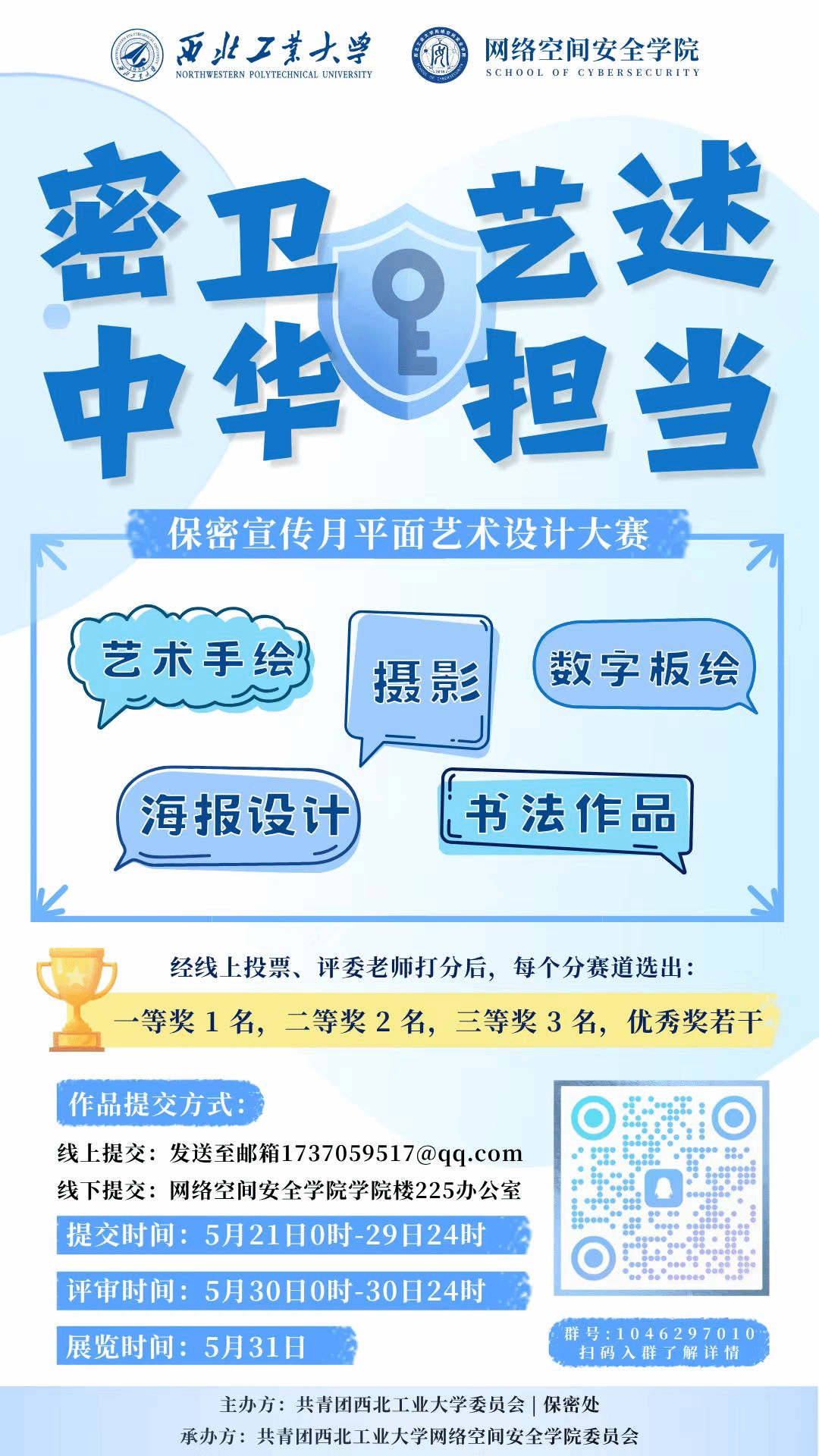 本次活动以“保密宣传教育”为内核,通过艺术创作的形式,将“保守国家秘密”“保密工作刻不容缓”等严肃主题转化为生动、直观的艺术表达,实现多重育人价值,筑牢国家安全防线,创新宣传教育形式,培育青年责任担当,推动文化育人实践。用艺术唤醒责任,以创作凝聚共识,让保密意识扎根青年心中,为国家安全的“隐形长城”注入青春力量!