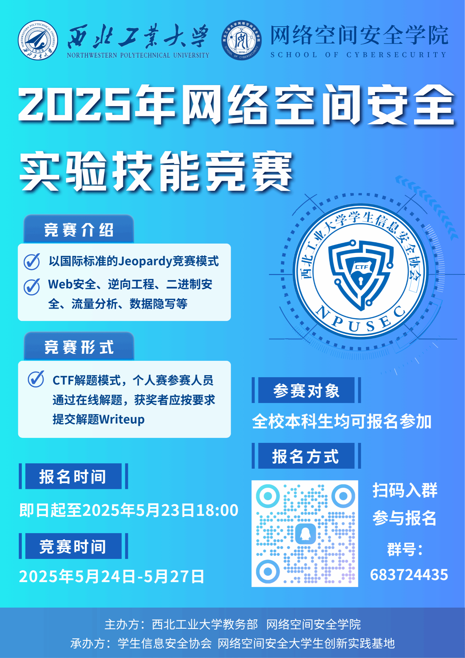 网安大学生创新实践基地拟在全校范围内面向本科生开展2025年网络空间安全实验技能竞赛。现将有关事项通知如下: