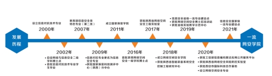 成为教育部认定的15所信息安全类”国家特色专业建设点”高校之一; 2015年获批国家控制布点专业"保密管理”专业,开展辅修双学位人才培养; 2016年获批网络空间安全- -级学科 ,成为获得该学位授权点的全国首批29所高校之一; 2021年获国家级-流专业建设点,推筒子