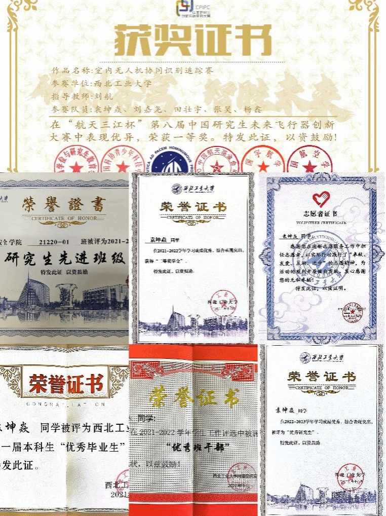 学生第三党支部宣传委员兼纪检委员、21220-01班级班长。研究方向为微型无人机的视觉惯性定位,作为负责人在第八届中国研究生未来飞行器创新大赛挑战赛道中取得第一名,曾多次获得学业奖学金及优秀研究生荣誉称号。 |