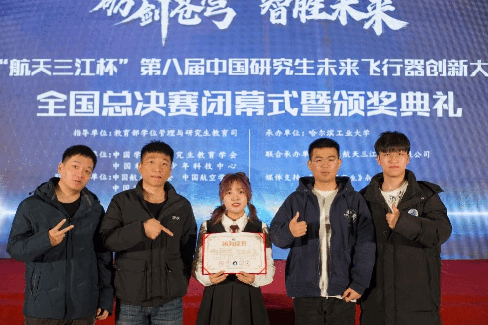 除了在社会工作方面的卓越表现,袁坤焱同学在科技竞赛中也取得了令人瞩目的成绩。作为团队队长,她带领团队参加了第八届中国研究生未来飞行器创新大赛,凭借出色的创新能力和团队协作能力,获得了挑战赛道第一名的优异成绩,为推筒子
