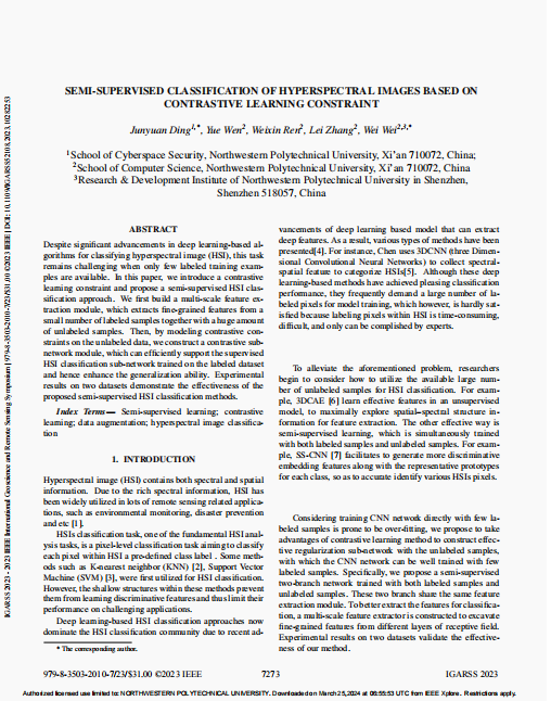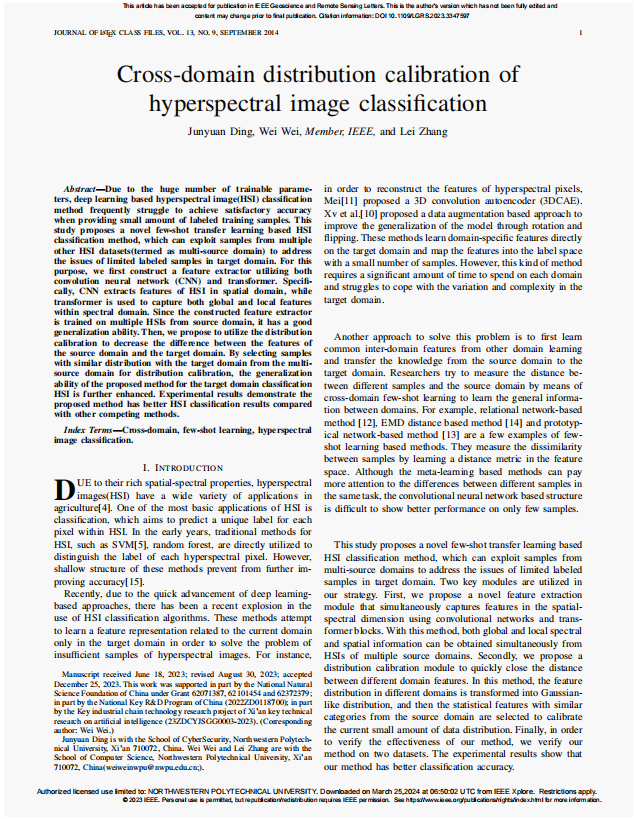 研究方向为基于深度学习的高光谱图像跨域分类方法。硕士就读期间以第一作者发表高水平论文2篇,获得软件著作权2项,参与2项国家自然科学基金项目,主持1次国家级纵向项目。