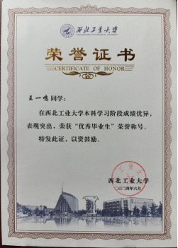 在学业中,王一鸣认真对待每一门课程,以求知为驱动力,努力学习专业知识、切实增强实践能力、全面提升综合素质,在半数以上的课程考核中得到90+的成绩,并有多门课程达到满绩。