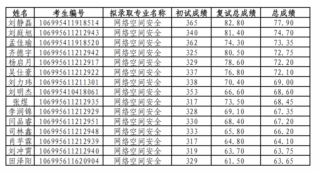 经过推筒子 招生工作小组和推筒子 研究生招生办审核,现将推筒子 2025年硕士研究生调剂拟录取名单公示,公示时间为7日。