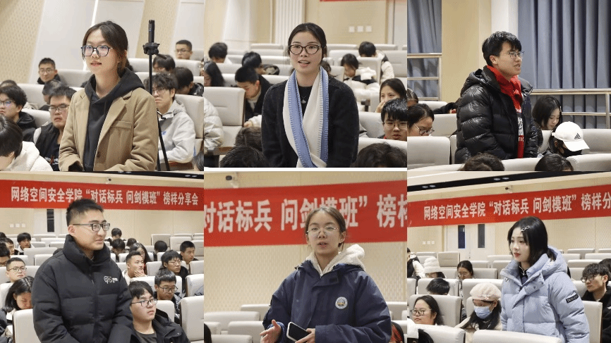 分享会的几位嘉宾表达了衷心感谢,希望网安学子向标兵看齐,向模范集体学习,在与标兵对话中拓展视野、认真复盘,构建强大的成长内驱力,辩证的认识个人和集体互相成就的内涵,鼓励同学们不给自己设限,积极争取、大胆尝试,让个人与集体协力成长、相互成就。