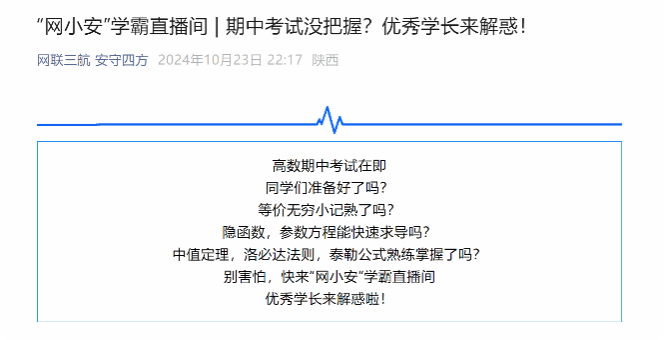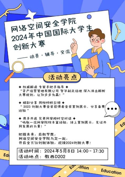 新生手册》,字数达15000+,覆盖学习、生活、学生工作、综测等各方面,帮助网安学子“扣好”大学的第一粒扣子。打造“网小安”直播间,邀请优秀网安学子,围绕微积分、计算机系统基础等课程学习以及校园成长等方面的问题为同学们解答疑惑;面向全校举办“恋爱主题讲座”,引导同学们树立正确的恋爱观,实现“德智体美劳“全面发展;打造网安特色CTF教学公开课,面向全校同学讲解相关专业知识,普及学科基础,提高竞赛参与度,实现以赛促学。持续举办考研、保研、就业经验分享会,全方位答疑解惑,助力网安学子升学、就业。文体活动方面多点开花,推筒子