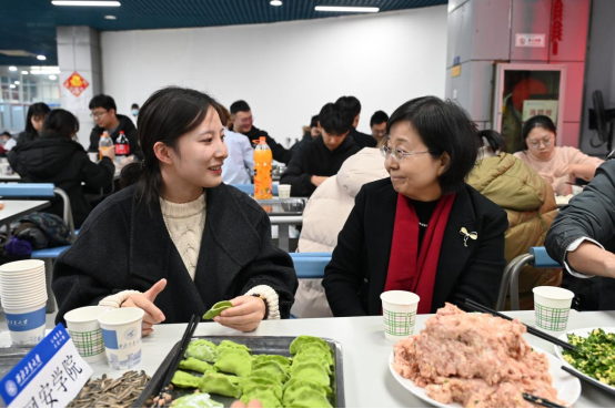 党委书记张文涛、院长王震、副院长刘家佳、副书记杜瑶、教授代表毛伯敏以及学工干部来到学生中一同包饺子,共庆新岁。大家从包饺子的心得体会谈论到各自家乡饺子的不同特色,处处洋溢着欢乐祥和、温馨有爱的新年氛围。