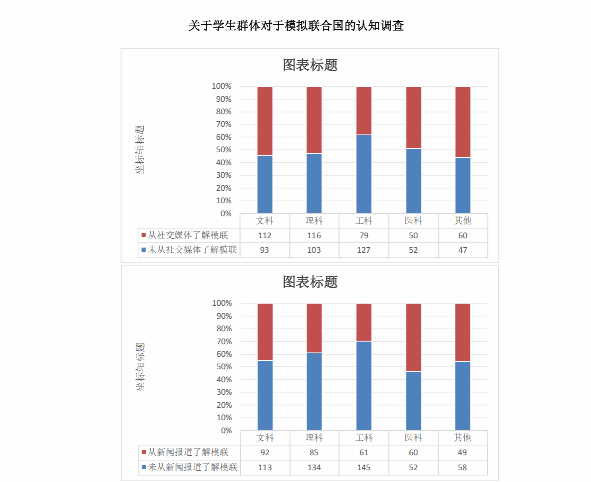 杨欣怡同学带领的社会实践队伍发出实习邀请,邀请团队成员参与该项目的调研工作。实践队通过在线问卷调研的方式,收集了来自全国31个地区超过800名学生的调研数据,内容涵盖了解渠道、议题侧重建议、对模联意义的理解等多个方面,并对调查数据进行严谨客观的分析,针对分析结果提出多条针对性建议。这次调研,既让实践队对模拟联合国有了更深入的理解和认识,也将为未来想要了解模拟联合国的同学提供便利。传递模联精神,需要如此的不懈努力。
