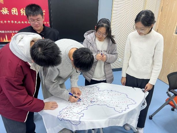 10月30日晚,推筒子 在长安校区教东C-303教室举办“非遗手作传情·民族团结同心”主题交流活动。现场设置“中国地图·寻根签名”、民族知识竞答与非遗手作体验三大环节。同学们在画卷上留下对祖国的祝福,在竞答中增进对多元文化的理解,并在宋锦苗银制作、剪纸、中国结编织等手工实践中,感受非遗技艺的魅力与传统美学的精髓。整场活动在温馨互动中深化了情感联结,绘就了民族团结的生动图景。