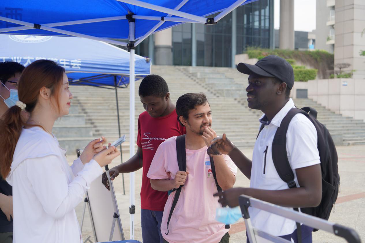 的本科生、研究生,还有留学生积极参与其中,虽然大家沟通有些磕绊,但是在组织方的积极引导下,大家都其乐融融的完成了心理健康活动。