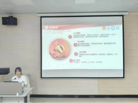 楼C101室举行主题班会。活动首先以团支书徐心悦对党的二十届三中全会进行概括性介绍展开。随后开展了趣味翻牌小游戏,进一步加深了同学们对党的二十届三中全会关键词的印象,大家在游戏互动环节的乐趣中踊跃学习,积极表达自己对祖国的热爱。