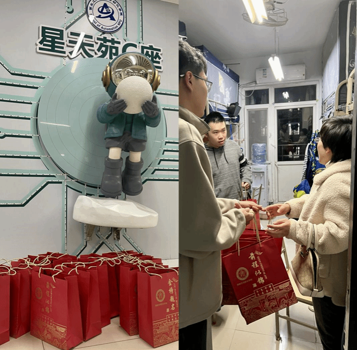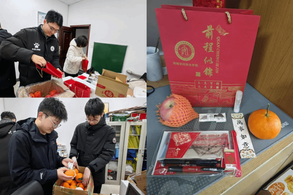 党委副书记杜瑶、专职辅导员朱丹以及兼职辅导员张昊翔共同深入学生宿舍,为考研学生送上精心准备的福袋。