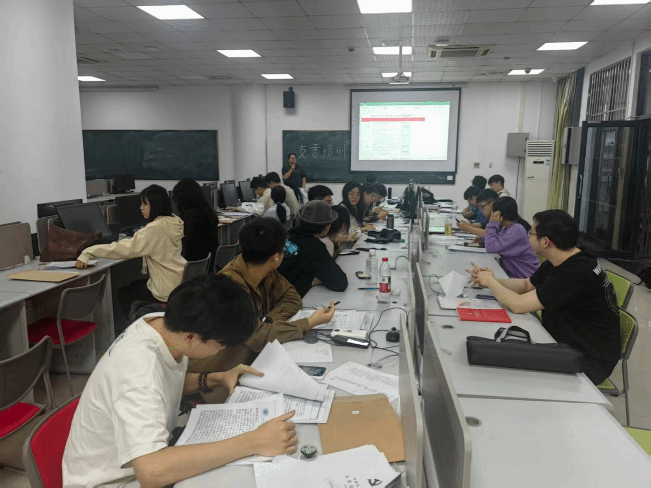 会议围绕发展党员工作与“三会一课”制度两大主题展开培训。首先,刘慧对发展党员工作的全流程进行了系统、细致的讲解,并开展了实操培训。与会人员人手一份入党材料,通过逐份逐页的讲解,对材料填写规范、常见错误及注意事项作了重点提醒,并现场解答疑问。会议还布置了近期发展党员重点工作及新入校党员材料检查任务。