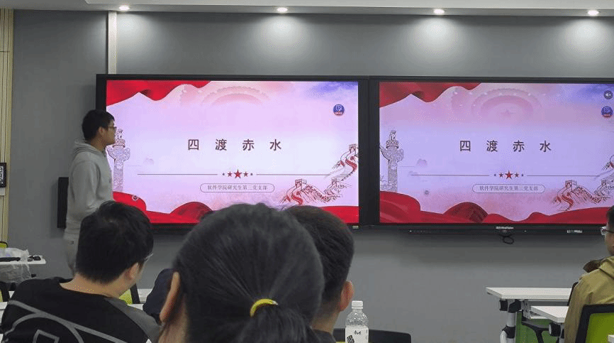 研究生第三党支部分享红军四渡赤水的故事。四渡赤水战役是遵义会议之后,中央红军在长征途中,处于国民党几十万重兵围追堵截的艰险条件下,进行的一次决定性运动战战役。在毛泽东、周恩来、朱德等同志的指挥下,中央红军采取高度机动的运动战方针,纵横驰骋于川黔滇边境广大地区,积极寻找战机,有效地调动和歼灭敌人,彻底粉碎了蒋介石企图围歼红军于川黔滇边境的狂妄计划,红军取得了战略转移中具有决定意义的胜利。