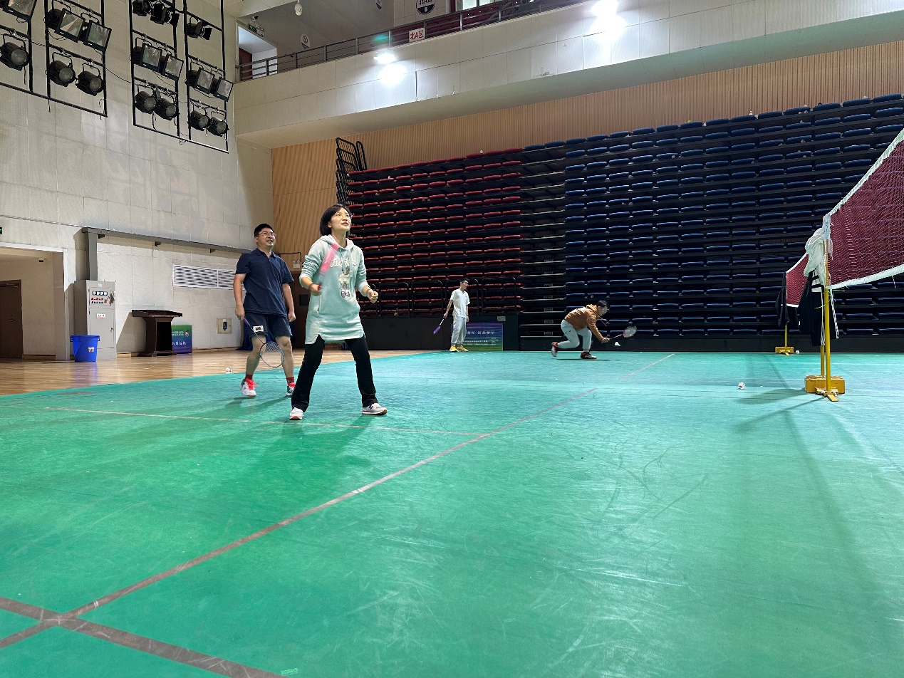 随着一声哨起,选手们开始了激烈的角逐。大家聚精会神、尽显风采,时而奋力扣杀,时而轻盈吊球,团队分工合理,配合默契,将各路球技展示得淋漓尽致。师生党员竭尽全力为团队争得比分和荣誉,充分展示出奋勇争先、百折不挠的精神风貌。场外的其他师生党员也一起为选手们呐喊助威、加油打气。欢笑声、欢呼声和掷地有力的挥拍声此起彼伏。