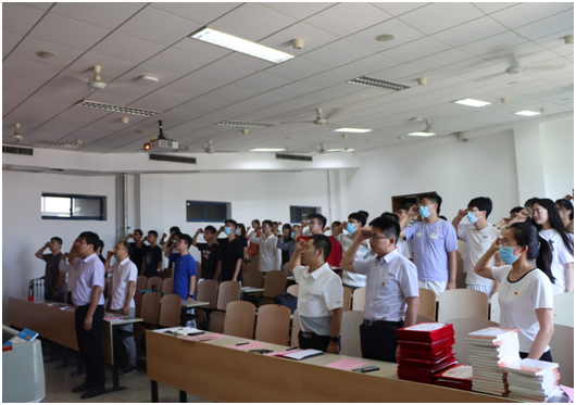党总支书记王震带领全体党员重温入党誓词。站在党旗下,在场的每个共产党员都心潮澎湃,热血沸腾!重温入党誓词仪式进一步激励党员以自身的实际行动积极践行誓词,以饱满的精神发挥共产党员的先锋模范作用,体现共产党员的先进性,永葆共产党员的政治本色。推筒子