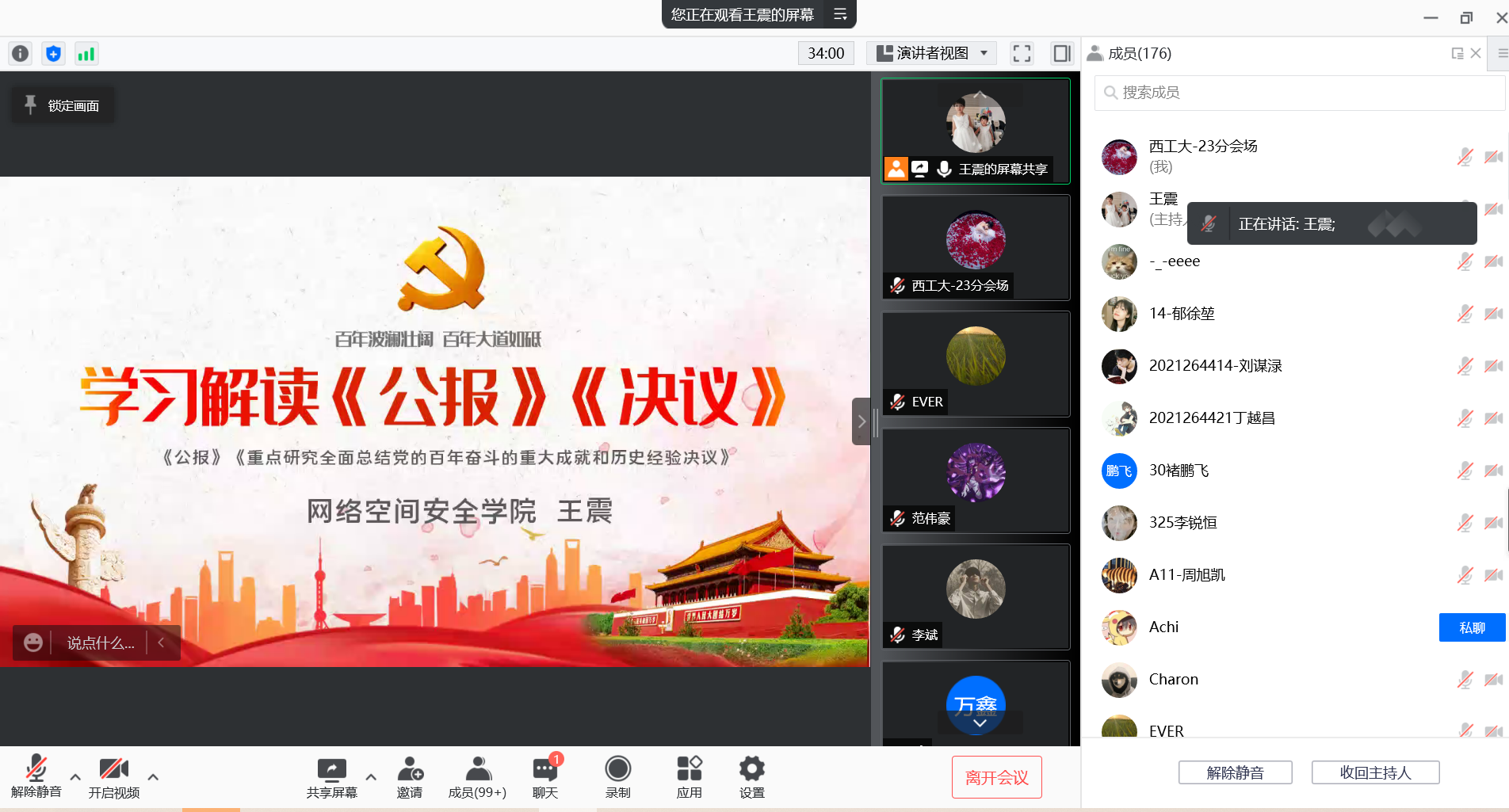 王震围绕学习贯彻党的十九届六中全会精神,从整体把握全面学习解读全会《公报》《决议》的主要内容,带领大家深刻全面了解了党的百年奋斗历程和重大成就,总结历史经验。宣讲内容丰富、主题突出,逻辑严谨、语言生动,既有理论高度,又紧密联系实际,对我们深刻理解、全面把握党的十九届六中全会精神,具有十分重要的指导意义。