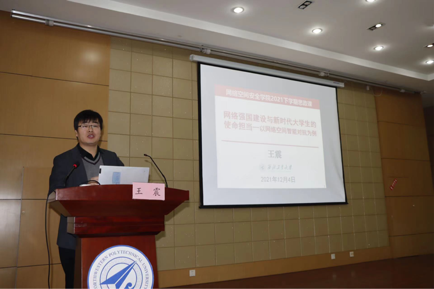 党总支书记王震以《网络强国建设与新时代大学生的使命担当——以网络空间智能对抗为例》为题,为全院学生党员和入党积极分子讲授了如何践行新时代网安大学生的使命担当。