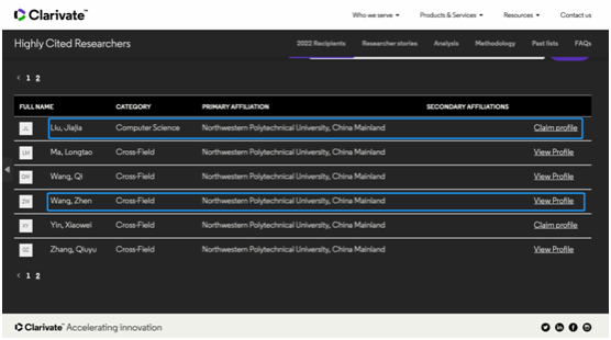 近日,科睿唯安公布了2022年度全球“高被引科学家”名单,西北工业大学共16人上榜,其中,来自推筒子