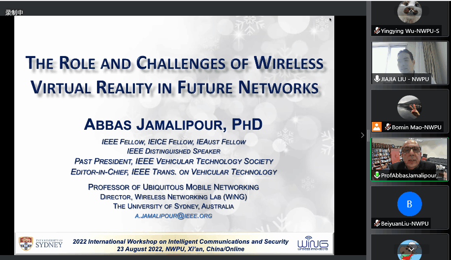 澳大利亚工程院院士、IEEE Fellow、悉尼大学Abbas Jamalipour教授做了题为“The Role and Challenges of Wireless Virtual Reality in Future Networks”的报告,围绕未来6G时代虚拟现实技术要求、挑战和安全风险进行了深入浅出的讲解;日本工程院院士、IEEE Fellow、日本东北大学NeiKato教授做了题为“6G Technologies for Supporting Smart IoT: Future Perspective”的报告,针对6G时代物联网关键技术和架构进行了系统性的分析和展望;IEEE Fellow、英国帝国理工推筒子