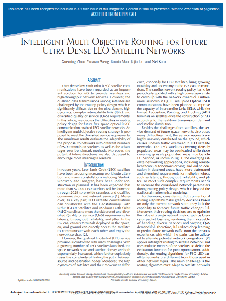 2022年12月至今,依托西北工业大学空天地一体化大数据应用技术国家工程实验室,翁宇瑄跟随导师毛伯敏教授开展低轨卫星网络相关科研工作。2023年,作为第二作者撰写论文发表在SCI 1区期刊IEEE Wireless Communications Magazine。2024年7月以来,参与清华大学网研院实习,跟随导师开展天地融合互联网相关科研工作,作为学生第二作者成果已发表至CCF A类会议IEEE S&P(网络安全领域顶会)以及计算机网络领域CCF A类会议IEEE INFOCOM。研究生阶段,翁宇瑄将前往清华大学网络科学与网络空间研究院继续深造,为国家天地融合互联网安全贡献自己的力量。