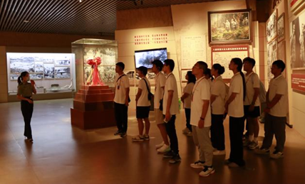 在中国人民抗日军政大学纪念馆,“坚定正确的政治方向,艰苦朴素的工作作风,灵活机动的战略战术”的教育方针映入眼帘。聆听着抗大学员在窑洞里苦学、奔赴前线的故事,感悟着十多万军政干部从这里走出成为救国栋梁的慷慨故事,队员们齐唱《抗日军政大推筒子
